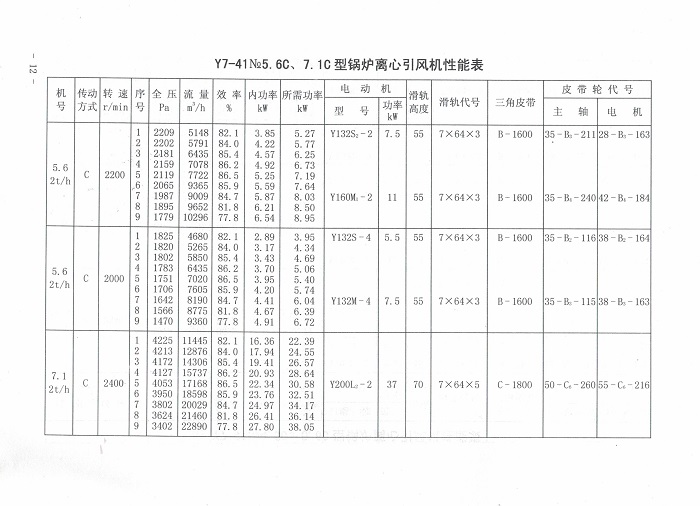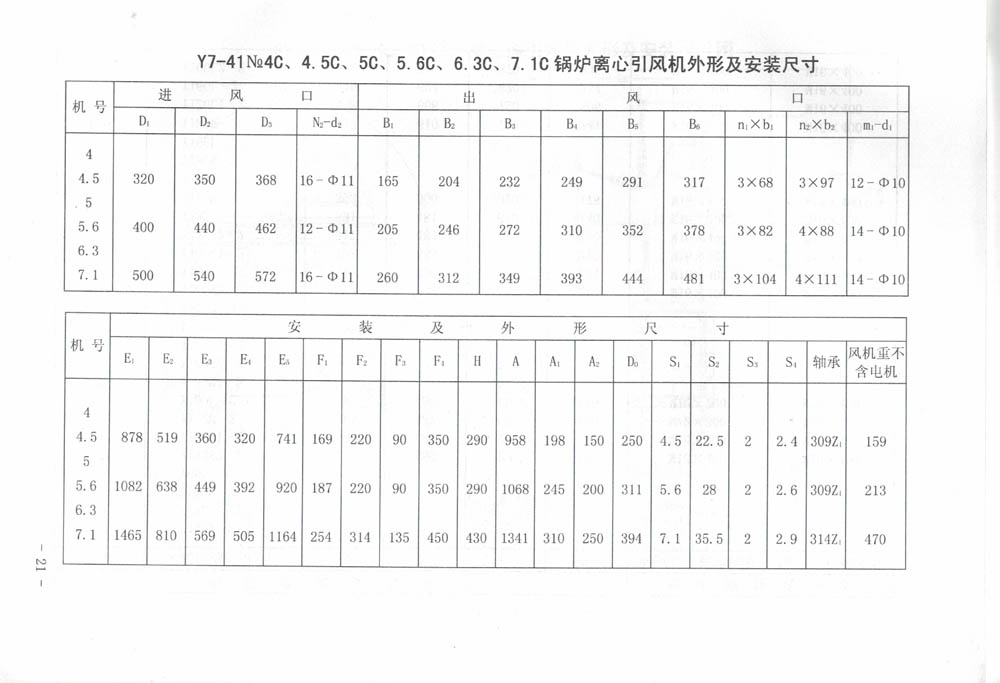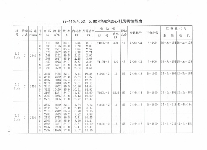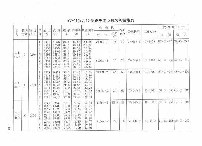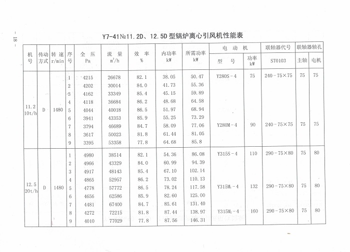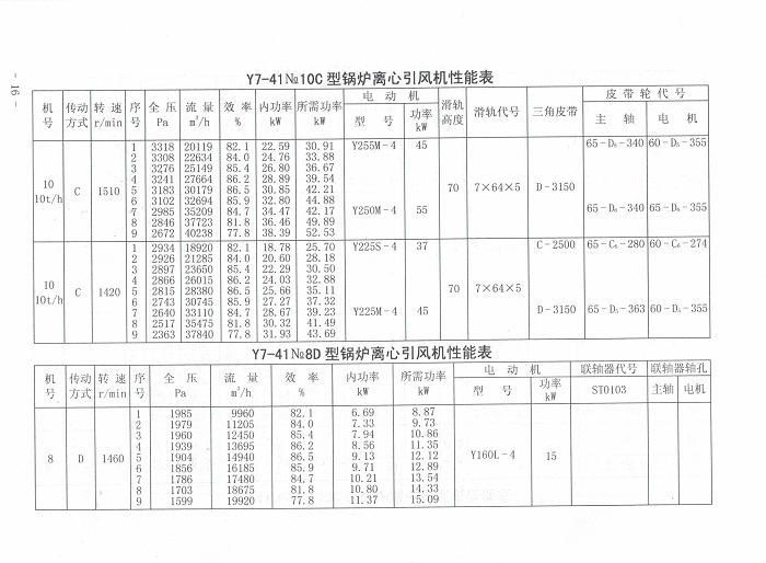 送風(fēng)機(jī)輸送的介質(zhì)為空氣,引風(fēng)機(jī)輸送的介質(zhì)為煙氣或含雜質(zhì)顆粒之氣體。含雜質(zhì)濃度小于200mg/m3時葉輪可用五年以上。如含雜質(zhì)大也可使用,但使用壽命相對縮短。送引風(fēng)機(jī)最高使用溫度不得超過250℃。性能參數(shù)條件:通風(fēng)機(jī)進(jìn)口壓力P=101325Pa,進(jìn)口溫度t=20℃,介質(zhì)密度ρ=1.2kg/m3;引風(fēng)機(jī)進(jìn)口壓力P=101325Pa,進(jìn)口溫度t=140℃,介質(zhì)密度ρ=0.85kg/m3。未注聯(lián)軸器型號均為F2508A。