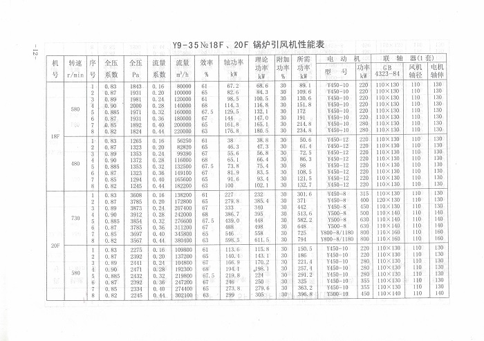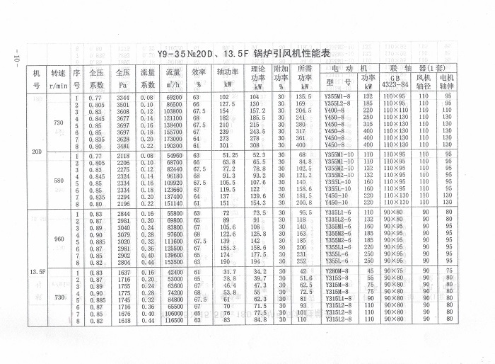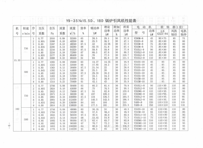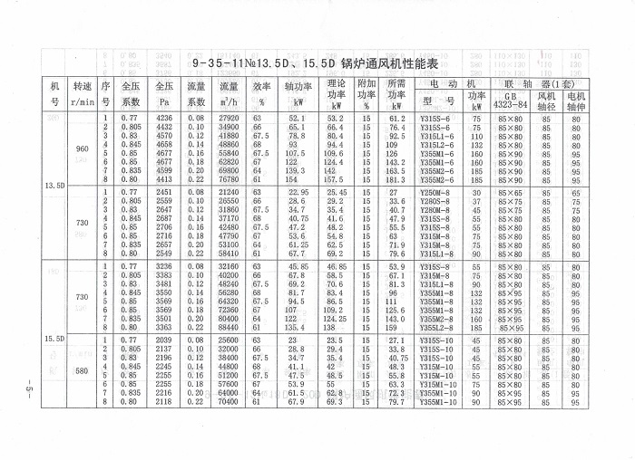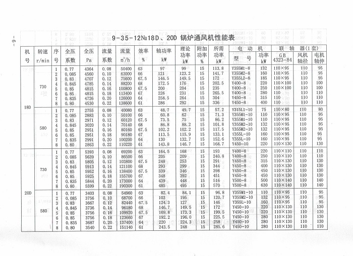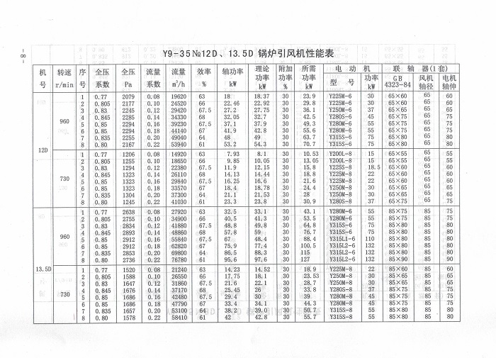 9-35、Y9-35型單吸鍋爐通引風(fēng)機(jī),主要適用于2t/h-230t/h蒸汽鍋爐的通引風(fēng)系統(tǒng)。通風(fēng)機(jī)的基本型號(hào)為9-35,引風(fēng)機(jī)的型號(hào)為Y9-35。